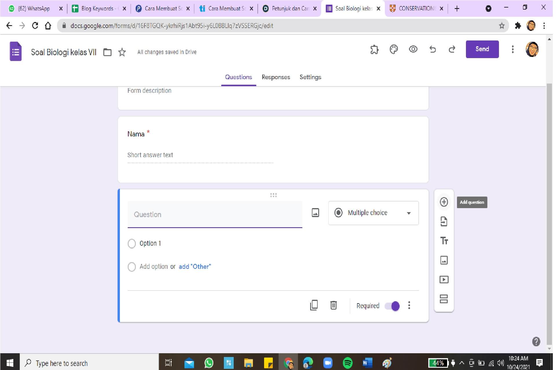 6. Mulai tulis soal dengan mengetikkan pertanyaan pada kolom bertuliskan “question.”